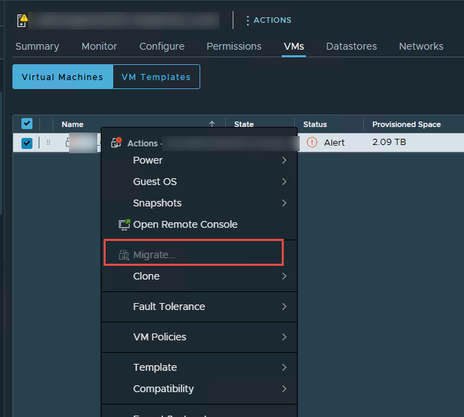 ¿Alguna vez has intentado migrar una Máquina Virtual en vCenter y te has encontrado con que la opción de Migrate… está completamente deshabilitada (en gris)?