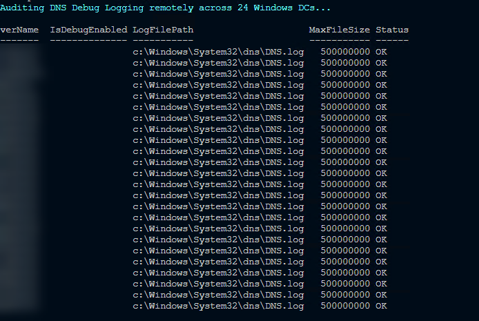 Write-Host "🔍 Auditing DNS Debug Logging remotely across $($DCs.Count) Windows DCs..." -ForegroundColor Cyan