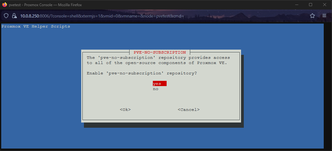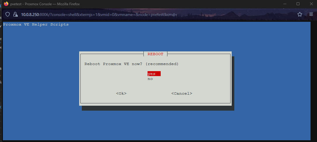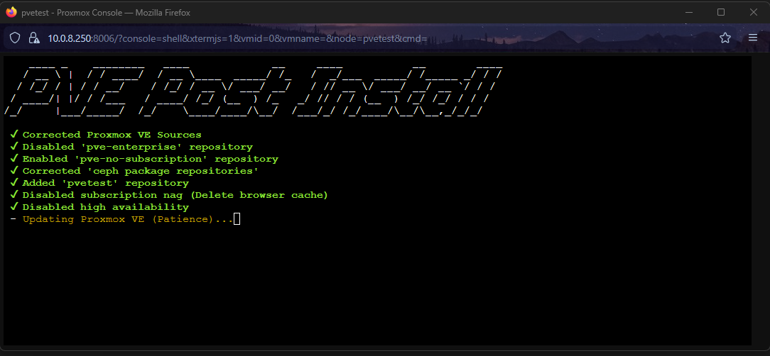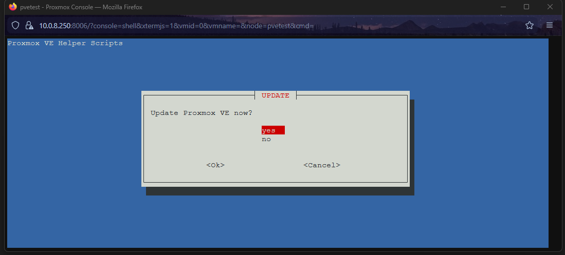 Finally, the script will ask if you want to “Update Proxmox VE?”. Answer Yes.