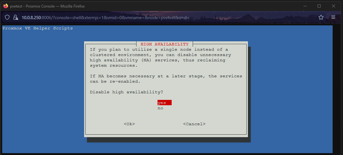 The script will ask: “Disable High Availability (HA)?”. This requires an architectural decision: