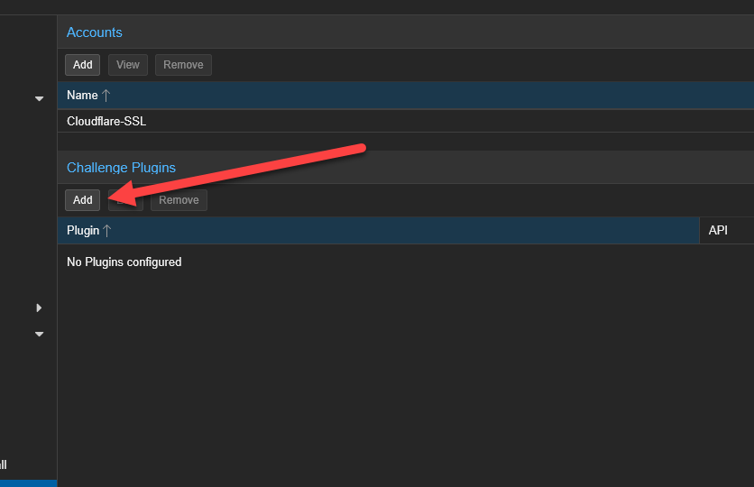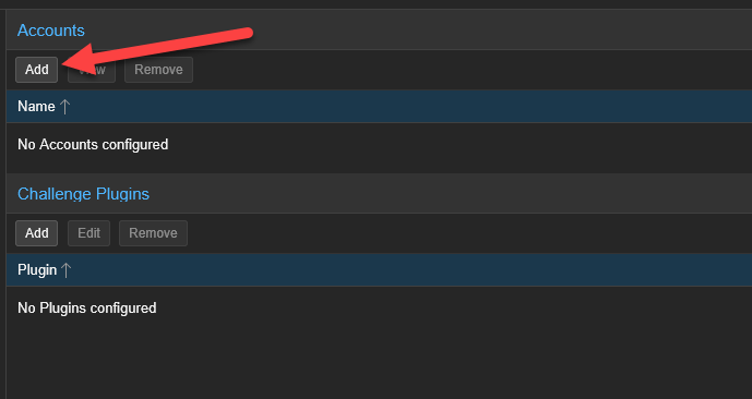Next, we must configure how Proxmox will prove to Let’s Encrypt that you actually own the domain you are requesting a certificate for. Scroll down to the Challenge Plugins section and click Add.