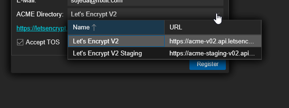 - ACME Directory: Select Let’s Encrypt V2.