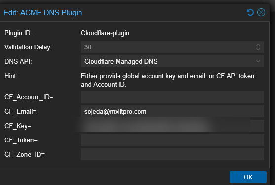 Cloudflare-plugin). - DNS API: Select your DNS provider from the massive list (we are using Cloudflare).