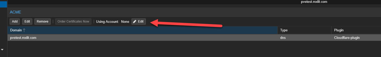 Still inside the Node’s Certificates page, under the ACME Account section, click Edit.