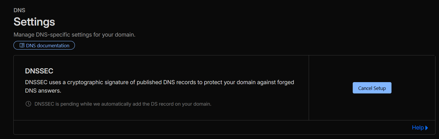- On the main settings screen, you will see the top card labeled DNSSEC.
