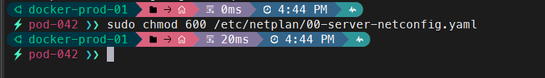 sudo chmod 600 /etc/netplan/00-server-netconfig.yaml