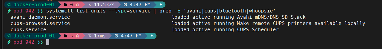 systemctl list-units --type=service | grep -E 'avahi|cups|bluetooth|whoopsie'