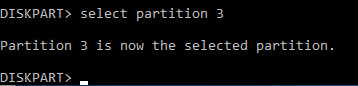 Select the partition with the following command.
